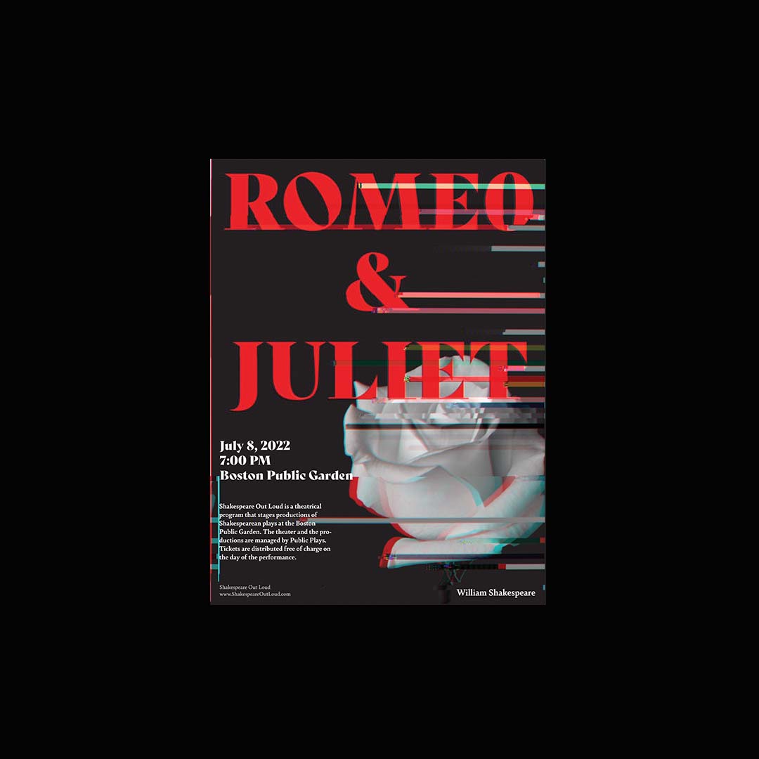 Dystopian Shakepeare is an event branding project that spans multiple deliverables. It started with a poster series design that expanded into ticket design, shopping bag design, pin design, and event program design. The graphic elements paired with the typography and effect help encapsulate the dystopian theme.